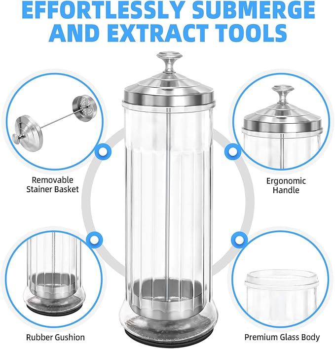 This 1500ml Barber Disinfecting Jar is made of durable stainless steel and glass, ensuring safe and effective sterilization for salon tools and accessories. Its transparent design allows easy visibility of contents, while its professional-grade quality makes it ideal for disinfecting nail tools, combs, and brushes. This product combines functionality, reliability, and convenience.