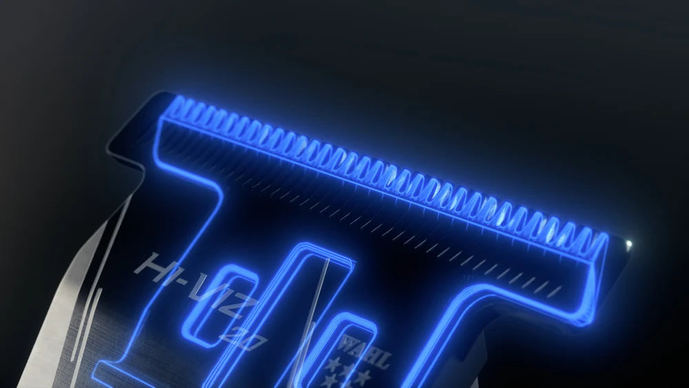 The Limited Edition Matte Black Nightshade edition of the Hi-Viz Trimmer by Wahl Professional features an improved 2.0 blade with deeper teeth, designed to feed the hair faster.